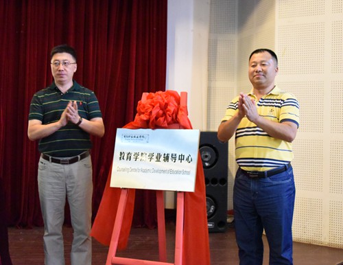 教育学院李莉老师围绕教育学院“学校、企业、社区”三方融合及“品行、身心、知识、技能”四位一体的办学模式,向新生介绍了教育学院有关情况,并提出了老师的殷殷期盼。老生代表纪雯琪表示了对新生的欢迎,同时分享了珍惜大学时光的重要。2016级新生代表表示在大学期间会学好规则,快乐学习;守好规矩,快乐生活;做好规划,快乐成长。最后,由教育学院院长郑洪利和副院长刘金柱共同为教育学院学业辅导中心揭牌。