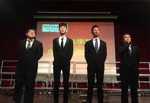 9月21日晚,海尔学院在艺术厅举办“军歌嘹亮,青春飞扬”2016级新生军歌大赛,海尔学院党总支书记费晓玉、党总支副书记潘乐、2016级新生班辅导员以及全体新生参加了活动。