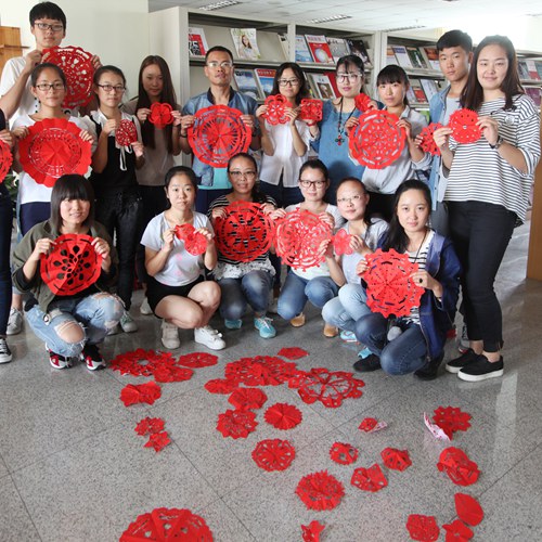 一张红纸,一把剪刀,对折翻转,镂空留白……几经雕琢,一幅幅趣味横生的剪纸作品大功告成。9月23日,图书馆举办“民俗剪纸DIY”传统文化体验课堂,来自我院不同专业班级的剪纸爱好者报名参加了活动。