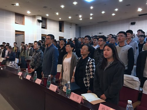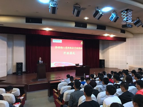 在雄壮的国歌声中,开班典礼正式开始,由入党积极分子代表发言。随后,李明杰讲话。她对入党积极分子提出认真学习、贯彻“两学一做”的要求,在学生中要起到模范带头作用,并对积极分子们表示鼓励。之后,费晓玉以“坚定理想信念,做新时期优秀大学生”为题进行了开班第一讲,同学们认真地做着记录,积极与老师互动。
