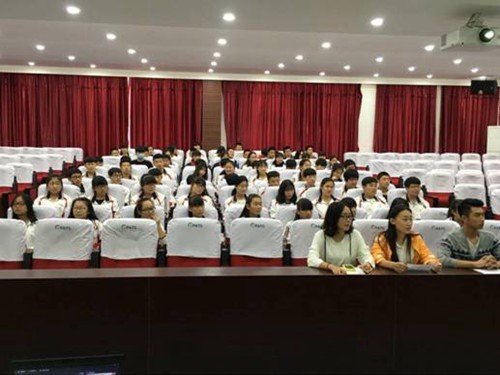 青岛石化高级技工学校全体14级、15级同学在认真听讲