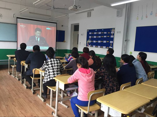 师生们表示,通过收看直播,了解了长征的伟大历史意义,学习和领会了长征精神,今后一定要做到不忘初心,奋勇前进,走好自己的长征路,为实现中华民族的伟大复兴做出贡献。