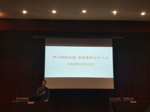 10月23日晚,旅游学院在艺术厅为会计专业(中爱合作项目)2014级至2016级学生举办“学习财经法规 做高素质会计人才”财经法规讲座,讲座由旅游学院党总支书记李明杰主讲。