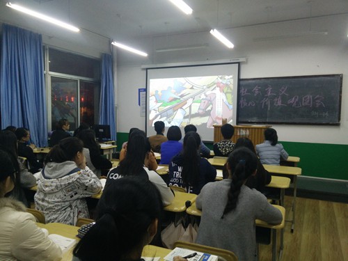 此次活动以班级为单位,在闻道楼的各个教室同时展开。首先播放《开学第一课》之长征精神系列节目,节目组请来了当年亲身经历长征的红军老战士,讲述了长征过程中那些真实又震撼故事。同学们被先辈们“信念不移、勇往直前、百折不挠、坚持不懈”的精神打动,热泪盈眶,表示要接过先辈的“旗帜”,为祖国的建设贡献自己的青春与力量。