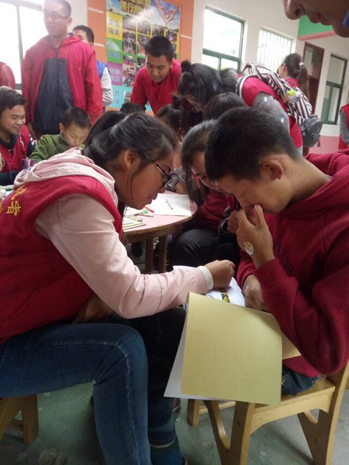 志愿者们在聋哑学院老师们的帮助下,与小朋友们愉快地玩耍,一对一地教他们画画,简单的绘画拉近了志愿者与孩子们的距离。随后,志愿者们教给小朋友们简单有趣的舞蹈动作,小朋友们在音乐中翩翩起舞,孩子们的热情深深地感染着志愿者们。