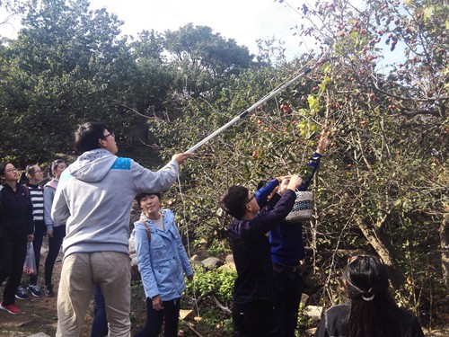 中午,社员们乘坐公交车来到徐爷爷家中,徐爷爷对社员们的到来表示欢迎和感谢,并与社员们拿着事先准备好的竹篮、竹竿一同前往山楂树下进行山楂采摘活动。在大家的共同努力下,满树的山楂全部被采摘完毕。除此之外,社员们还陪老人一起聊天,气氛融洽。