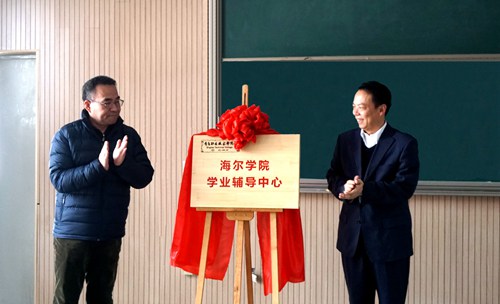 副院长张秋生、海尔学院院长张明耀为海尔学院学业辅导中心揭牌