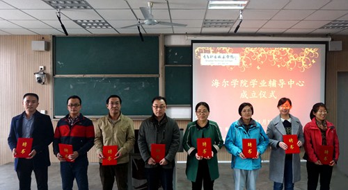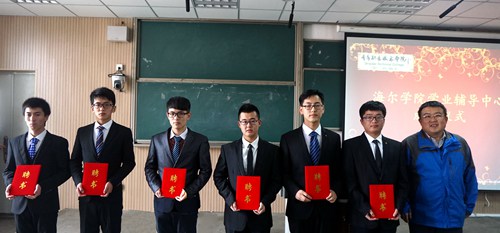 仪式上,张秋生和张明耀共同为海尔学院学业辅导中心揭牌,费晓玉宣读了聘任专业导师和学业小导师的决定,张秋生和张云龙分别为受聘专业导师和学业小导师颁发了聘任证书。学生黄仙胜代表全体学业小导师发言并承诺按照学院学业小导师的管理规定,努力提升自己的专业水平,对受助学生学习提供帮助,促进学院学风建设。