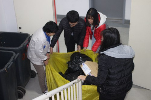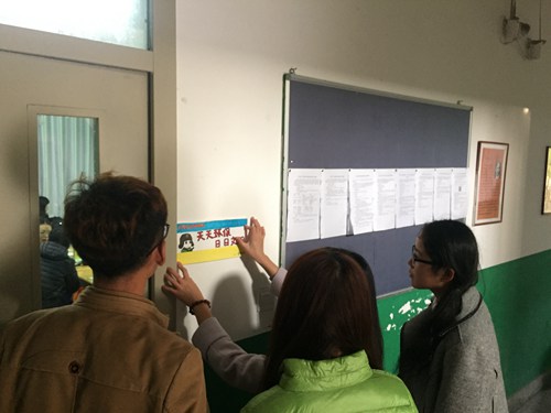活动分两部分进行。温心标语行动过程中,雷锋班成员制作“严以律己,宽以待人”、“天天环保,日日文明”等温心标语,将其张贴在闻道楼教室或走廊中,以此来倡议学院师生共同在日常学习、工作与生活中用实际行动积极回应标语;环保暖心行动过程中,雷锋班成员以小组为单位,每天早上坚持帮助11号学生公寓两名保洁阿姨拖运装满垃圾的袋子,做一些力所能及的工作。整个活动过程中,雷锋班成员全身心投入,得到了师生的一致好评。