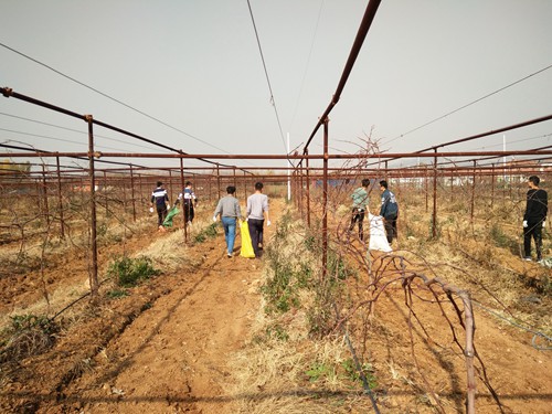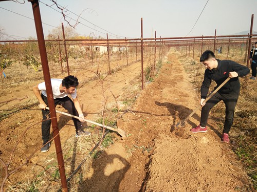 活动中,根据任务分工,同学们分为3组,分别进行葡萄采摘、土壤填埋、清理石块。6个小时的劳动拓展,使同学们在劳动中互相学习,接受锻炼。