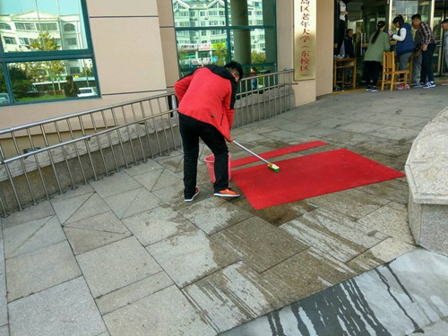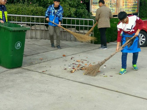 活动中,同学们任务分工明确,积极参与劳动,并通过相互协作将院内的落叶清扫干净,将大门的玻璃擦拭明亮,为老人们营造了一个舒适整洁的环境。