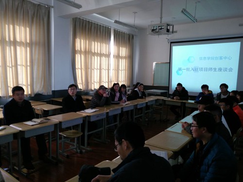 11月24日,信息学院举办创客中心第一批入驻项目师生座谈会,信息学院负责人、相关教师和工作室创客代表参加了座谈会。