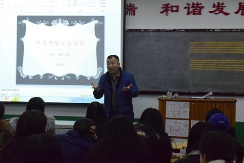 11月23日,教育学院在闻道楼举办“声乐演唱方法与探究”专题讲座,讲座邀请教育学院副院长刘金柱担任主讲人,2016级音乐教育专业和学前教育专业的部分同学参加了讲座。