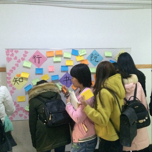 11月27日,知行书院楼管会在知行书院一楼大厅举办庆祝知行书院成立两周年系列活动之“爱要大声说出来——我心中的书院”祝福语征集活动。