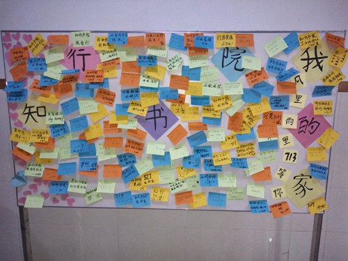 活动中,同学们通过华丽或简朴的文字,在“祝福展板”上纷纷留下祝福语,献上对书院的真挚祝福。活动结束后,“祝福展板”上贴满了满载着祝愿的便利贴。
