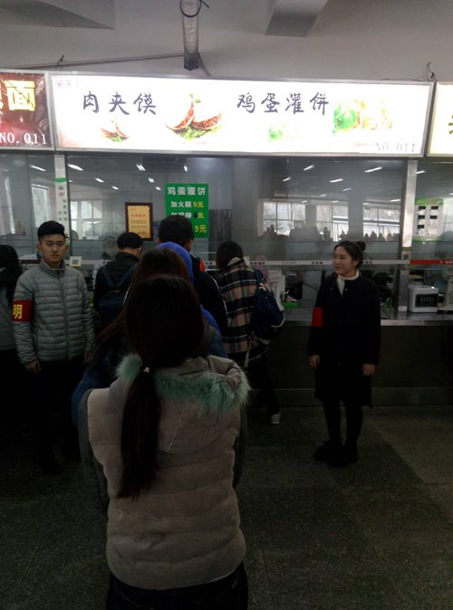 活动中,30名佩戴“文明”袖章的志愿者清扫了两个食堂内外卫生,并于师生就餐高峰时段,维持食堂秩序、收拾清理餐桌等。志愿者们纷纷表示,活动增强了同学们“主人翁”意识,提升了同学们对文明食堂的理解。