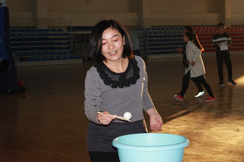 12月1日,生物与化工学院工会2016年教职工趣味运动会在体育馆举办。活动共有四个项目:定点投篮、夹乒乓球、摸石过河、螃蟹背西瓜。运动会上,教师们积极参与,热情高涨,充分展示了我院教师良好的精神面貌。全场被热烈活跃的气氛笼罩,跟场外的寒冷天气形成了鲜明对比。