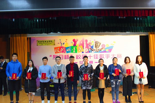 比赛在大学生艺术团活力四射的开场舞中拉开了序幕。参赛的10位选手经过初赛、复赛以及半决赛的层层选拔,从158位同学中脱颖而出。选手们在舞台上尽情的演绎,从歌曲演唱到情绪表达,各具特色与风格。《乡愁》、《活着》、《beautiful love》等歌曲充分体现了我院学生热爱音乐、追求艺术的激情,选手们用优美动听的歌声、青春靓丽的艺术表现形式与观众进行互动,引起场内观众心灵的共鸣。经过两轮激烈比拼,综合评委评分和微信投票,最终来自信息学院的姜文林、曲翔和朱亮同学分获冠、亚、季军;教育学院王海伦和刘倩倩同学分获“最佳人气奖”和“最佳舞台表现奖”;海尔学院鞠金杨、旅游学院李亚男等同学获得校园“十佳歌手”荣誉称号。此外,比赛还安排了微博墙互动和现场抽奖环节,活跃了现场气氛,增强了选手与观众的互动,使活动更加精彩,获得大家的一致好评。