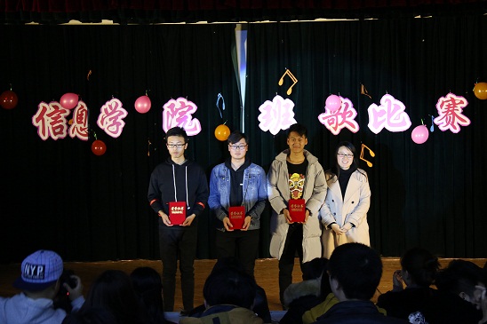 大赛成绩由三部分组成。初赛成绩占20%,微信投票成绩占10%,决赛成绩占70%。比赛过程中,各班级同学热情洋溢、神采飞扬,尽显信息学院学子风采。同学们用满腔的热情唱出对班级的无限热爱之情,用歌声展示出自己对梦想的不断追求和美好憧憬。比赛精彩纷呈,掌声不断。经过激烈角逐,2016级软件1班获比赛一等奖,2016级软件2班、2016级应电2班分获二等奖,2016级网络1班、2016级应电1班、2016级网络2班分获三等奖。