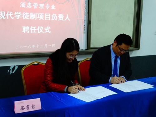 酒店管理专业与喜达屋国际酒店集团青岛区的4家酒店牵手于2016年4月、6月分别获批山东省和青岛市现代学徒制试点项目以来,已先后完成企业师傅工作室揭牌、学徒入企业拜师、师徒启动第一期指导计划等工作,项目负责人的聘任旨在保障酒店管理专业现代学徒制项目高质量、高标准的完成预期项目建设任务和建设目标,助推酒店专业以现代学徒制为标志的新型人才培养模式的落地执行,加速校企合作进入更加紧密、更加务实的新阶段。