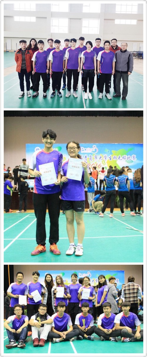 12月8日至9日,我院大学生羽毛球队参加由青岛高校体育协会、山东外贸职业学院承办的“帕特娜丝杯”2016年青岛市第二届大学生羽毛球比赛。大赛吸引了来自中国海洋大学、中国石油大学(华东)、青岛大学和我院等22所驻青高校的151名运动员参加。