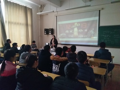制冷16-1团支书韩裕向同学们讲解国家公祭日由来