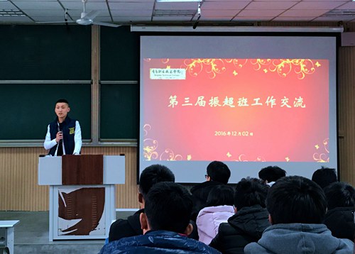 12月12日,海尔学院在修能楼开展振超班学习交流活动,活动由振超班各科研团队汇报2016年学习及科研成果。海尔学院党总支书记费晓玉,团总支书记隆娜娜及振超班全体学员、2016级学生代表参加活动。