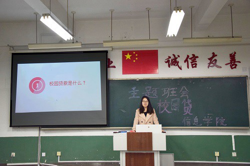 信息学院辅导员袁婷婷在召开校园贷主题班会
