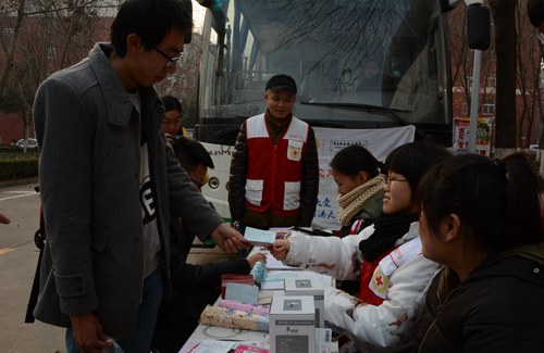 活动分别在海韵厅和海悦厅门前设两个采集点,同学们不顾凛冽的寒风,在志愿者们的引导下,井然有序地填写报名表格,然后进行体格检查、血液初筛和献血。两天时间共有205位同学参加了无偿献血活动,每人献血量300-400毫升,此次采集新鲜血液达到67500多毫升。