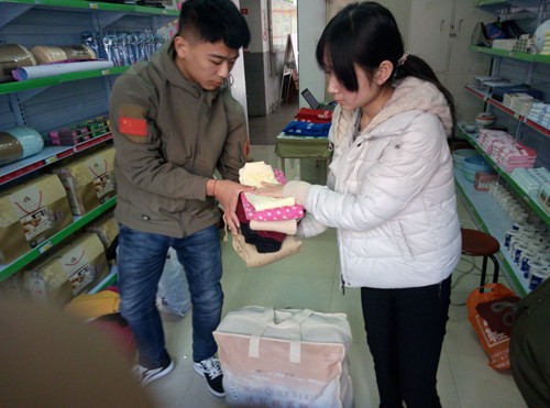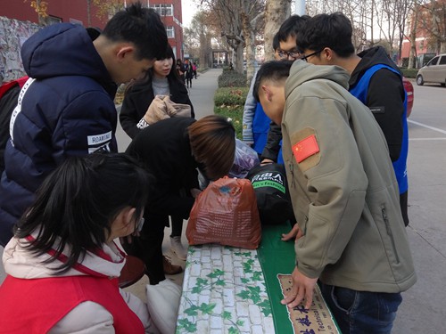 社员们在校园网上发起募捐倡议,并在青之爱公益超市和海韵厅附近宣传栏处设立募捐点,经过一周的募捐活动,共收到师生捐赠的棉衣、棉裤、毛衣、帽子、棉被等保暖用品350余件。社员们把爱心募捐的物品认真进行整理和记录,通过黄岛区广播电视台《民生新闻坊》节目组发往青海省玉树州。