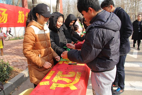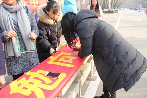 12月23日,商学院在海韵厅门口开展心系绿丝带之“让舞弊远离校园,让诚信永驻心中”签字活动。