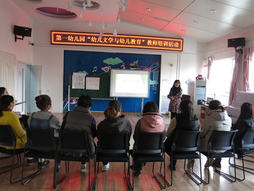 1月7日中午,教育学院学前教育专业教师张静静在开发区机关第一幼儿园(盛世江山分园)研修期间,为幼儿园全体教师作题为《幼儿文学与幼儿教育》专题讲座。
