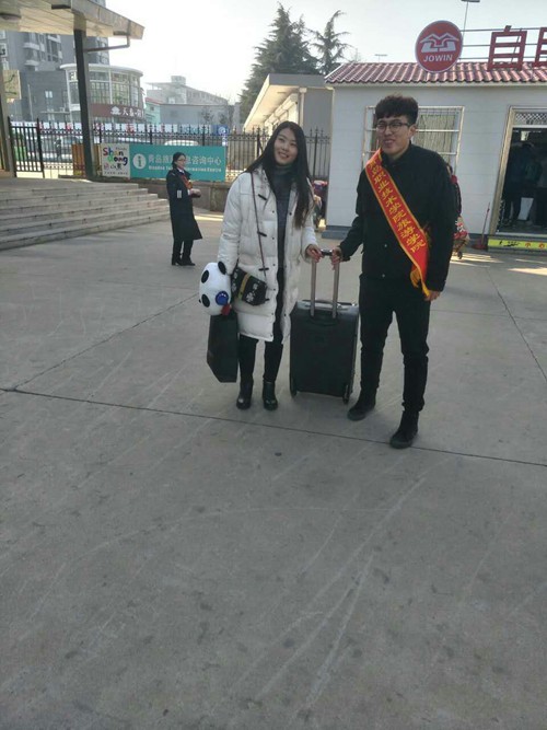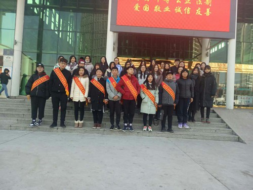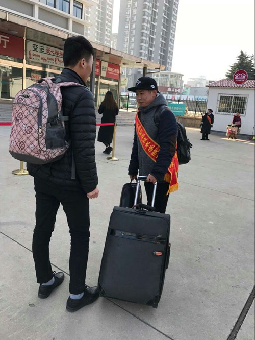 1月15日,旅游学院中爱会计2016-2班的“向阳花”志愿者来到黄岛汽车总站,开展以“帮‘沉重’人减轻负担”为主题的春运送温暖社会实践活动。