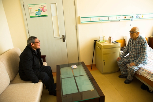 随后,孔宪思带队来到青岛市立医院,走访慰问我院离退休老干部崔振声、晏文正。孔宪思详细询问了晏文正教授的健康状况,介绍了学院近期的发展情况,并请他安心治疗,尽早康复。孔宪思还看望了同在住院的我院老干部崔振声,向家属表示亲切慰问,并祝愿老人早日康复。