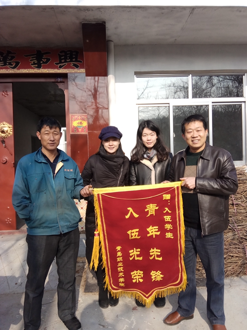慰问小组赴胶南为入伍学生家庭送锦旗