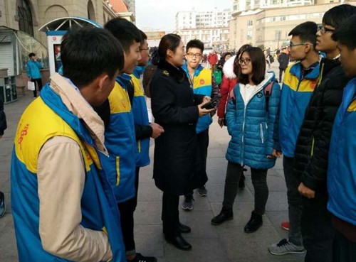 2月3日至5日,海尔学院机电2016级2班团支部部分志愿者来到青岛火车站,开展了“路遥心暖”冬季志愿服务活动。