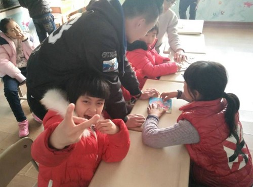 为更好地拉近与孩子间的距离,志愿者们准备了蛋糕、玩具等,并与孩子们一起分享。活动中,志愿者们走上讲台,与孩子们进行“你划我猜”等不需要语言的互动游戏;户外活动时间与孩子们玩起老鹰抓小鸡的游戏,从小朋友们脸上的笑容中,志愿者们感受到了他们内心的欢乐与满足。