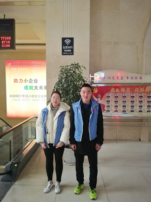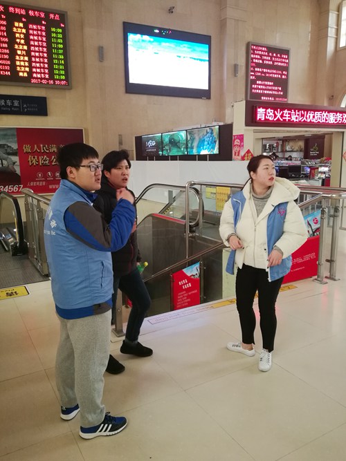 2月16日上午9时开始,商学院7名志愿者来到青岛火车站参加春运“暖冬行动”志愿服务活动。他们身穿蓝色马甲穿梭在火车站中,尽己所能为有需要的旅客提供帮助,为春寒料峭的岛城增添了一份温暖。