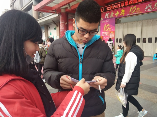 2月19日,知行书院冬季社会实践调研宣传团队前往黄岛区香江路长江购物广场附近,开展“无烟世界”调研宣传实践活动。