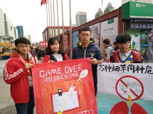 活动开展中,团队学生分散在多个不同区域开展工作。各个小组积极发放并回收关于吸烟的调查问卷,同时呼吁市民积极参与宣传活动,团队成员还向市民展示自制的禁烟海报,并进行拒绝吸烟的游走宣讲,向公民宣传吸烟所导致的疾病和危害。此次活动共发放问卷70份,问卷调查结果分析显示,有53%的烟民认为通过自我觉悟可以有效地劝阻吸烟,47%的烟民认为开展积极的禁烟活动和心理教育才能劝阻吸烟。