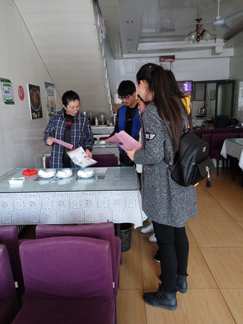 活动中,志愿者自行分组,向马路两侧的银行、商店、水果店、餐馆等场所发放《关爱环卫工人倡议书》,倡议为环卫工人提供一席歇息之地,为其在工作之余,提供板凳及热水,给他们带去社会的关爱。在志愿者的感召下,许多商家参与到活动中,并表示愿意为环卫工人敞开大门,免费提供热水、休息场所、洗手间等便利条件。