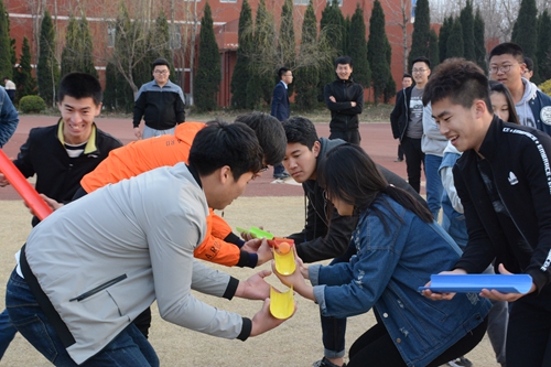 3月23日,海尔学院振超班同学在学院风雨操场开展团队素质拓展训练活动。
