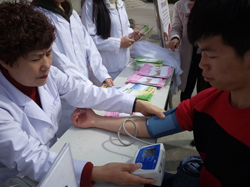 学院医务室医务工作者在宣传活动现场开展义诊活动