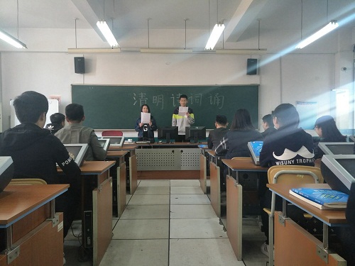 3月31日下午,信息学院2016级计算机网络一班在修能楼开展了“清明诗词诵”活动。