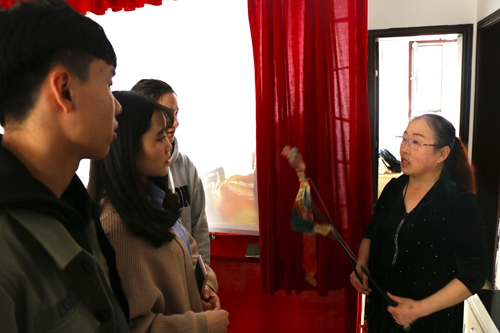 活动中,学生们参观了老艺术家制作的成百上千的皮影人物,吴云凤还向学生们介绍了皮影的由来以及许多皮影艺术的故事,同学们都感到受益匪浅。