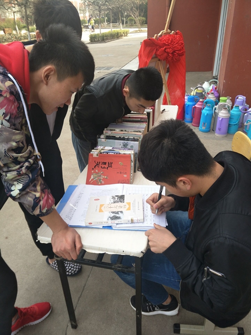 活动组织者选择阅读量大、富有亲和力且表达能力强的学生作为工作人员,将老师推荐的经典书籍搬至知行书院门口,并按照类型进行分类,如传统经典、古典名著等。通过“叫卖”的形式向来往同学讲解并推荐书籍,邀请同学到知行书屋挑选感兴趣的书籍慢慢品读,并在留言墙上留下自己的读书心得。同学们纷纷表示,书籍经过工作人员的介绍变得更有趣味,今后会经常前往书屋借阅书籍。