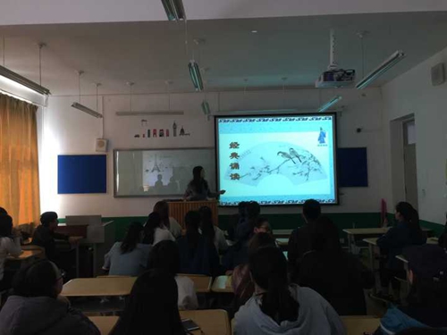 4月2日,旅游学院酒店管理2016级1班全体同学在闻道楼开展“中华经典诗文吟诵,诗歌诵读”团课活动。