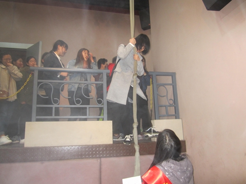 参加模拟逃生体验