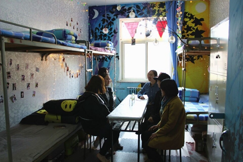开放日首选女生13号楼、男生5号楼,艺术学院党总支书记李志强、团总支书记赵静、学生党支部书记苏艺、就业负责人朱松岩、2016级辅导员张金花、甄妮老师以及全院师生在志愿者的带领下参观了各个宿舍。活动期间男、女同学互访了寝室,展示内务情况,以干净整洁、舒适温馨的寝室招待“客人”。在此次公寓开放日中,女生宿舍普遍明亮整洁,物品摆放整齐,很多宿舍还用自己亲手制作的小饰品装点宿舍,营造出温馨舒适的宿舍氛围,令参观的师生赞叹不已。男生宿舍也不甘示弱,宿舍收拾得整洁明亮,宿舍内新添置的绿色植物和精美的涂鸦,都获得了大家的好评,让大家看到了艺术学院学生宿舍的独特创意和具有艺术特色的宿舍文化。