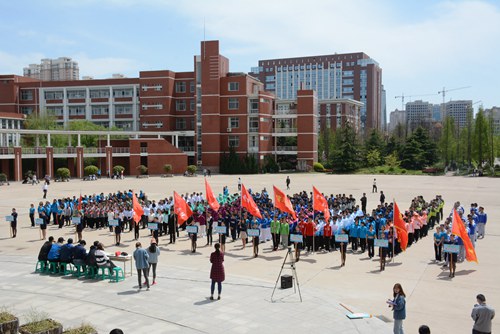 4月20日中午,由院工会和基础教学部主办的2017年教职工第九套广播操比赛在学院图书馆回音广场举行。学院党委副书记刘甲珉出席比赛,学院13个二级工会524名教职工组队参加了比赛。